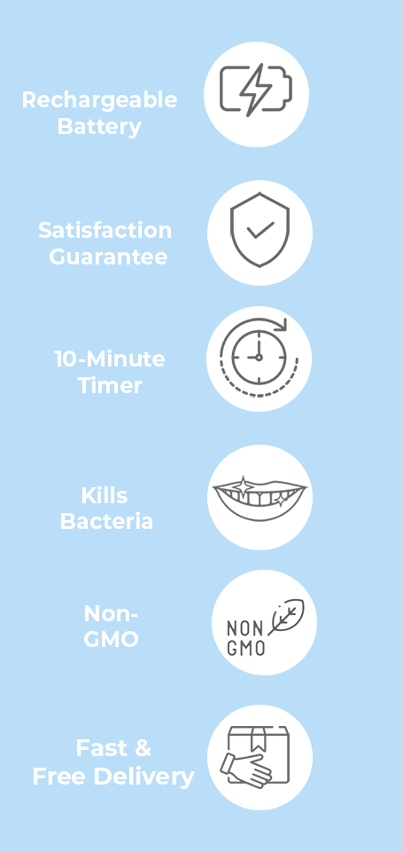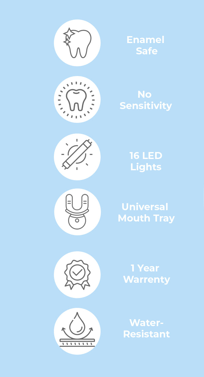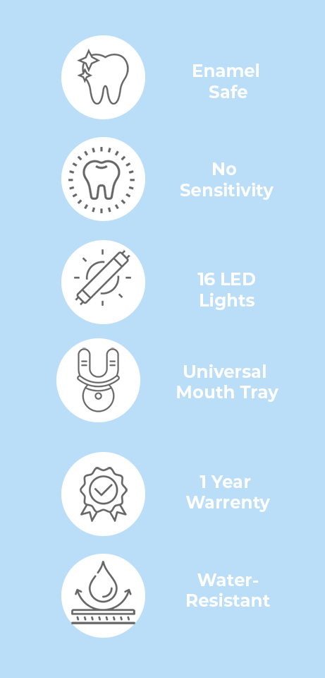 Our cutting-edge blue LED accelerator light activates the whitening formula, amplifying the oxidation process for faster, more effective stain removal—even for deep-set stains. This leads to a brighter, whiter smile that lasts.