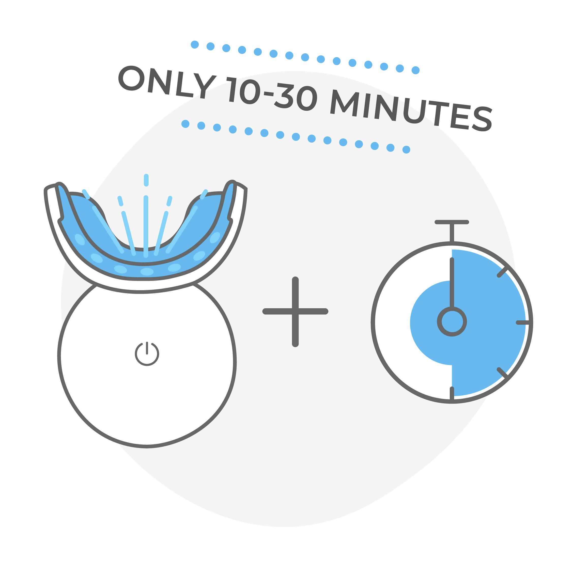 Most customers see a noticeable difference in the colour of their teeth after the first application. Although, we normally recommend 10-minute treatments for at 7 consecutive days to achieve the best whitening result.