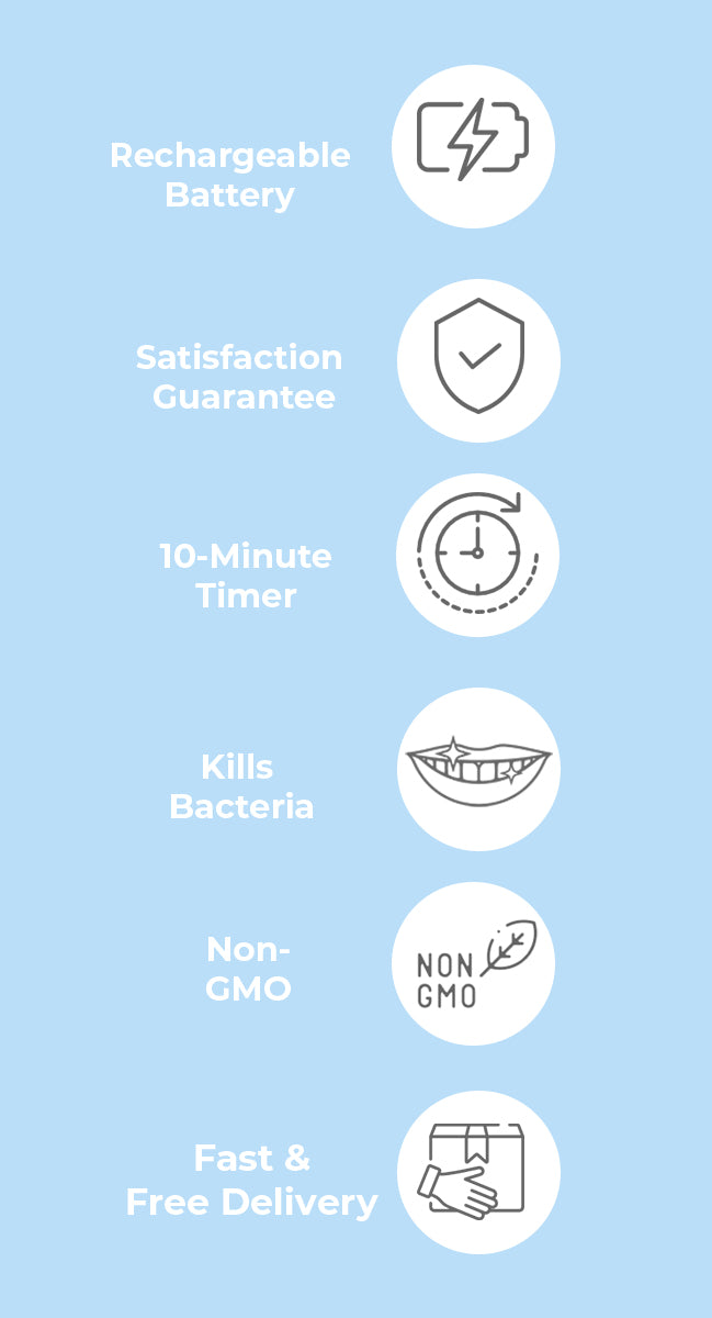 The red LED light supports overall oral health by reducing harmful bacteria, soothing gum inflammation, and alleviating tooth sensitivity, making the whitening experience comfortable and gentle on your teeth and gums.