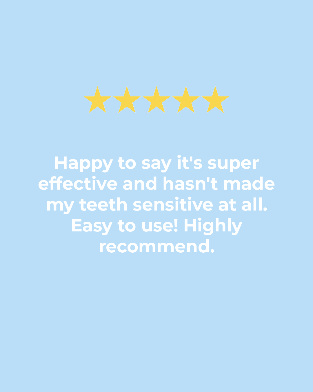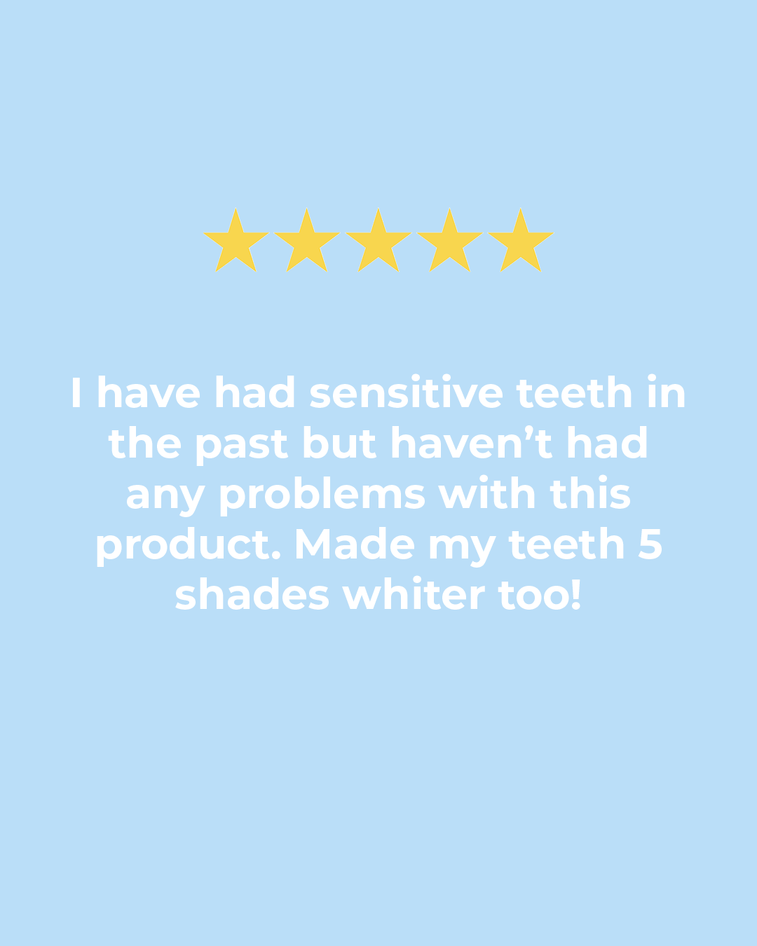 Rated 5 out of 5 starsGreat productMy teeth have 68 years of use and had yellowed significantly. After 10 days of the treatment they are noticeably whiter. Easy to use and no adverse effect on sensitivity.